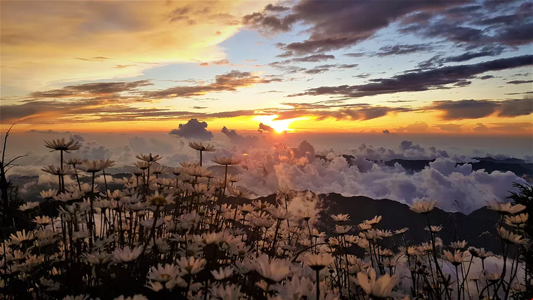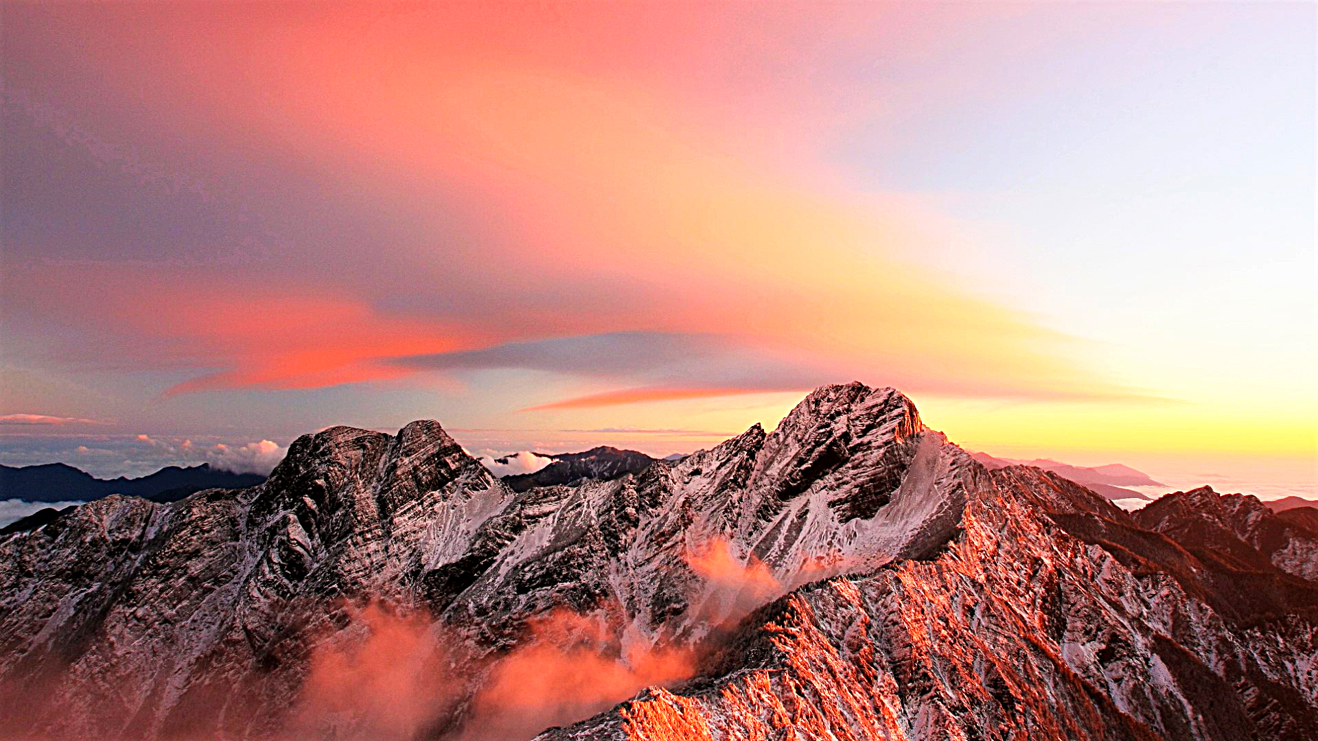 But snow season is also Xie’s favorite thanks to the changing colors of sunrise and sunset, which provide fantastic shots. He has also photographed ox-eye daisies blooming on the North Peak, ice-covered Taiwan edelweiss, and proud Yushan juniper. The clouds high above dramatically take the blue sky as their backdrop, shifting colors with dawn and dusk.