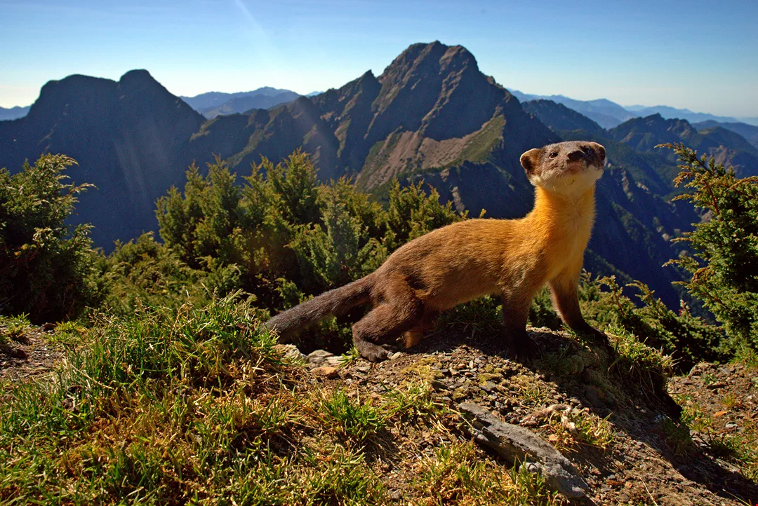 Becoming adept at photography, Xie has captured many snapshots of the mountain’s beauty.A yellow-throated marten