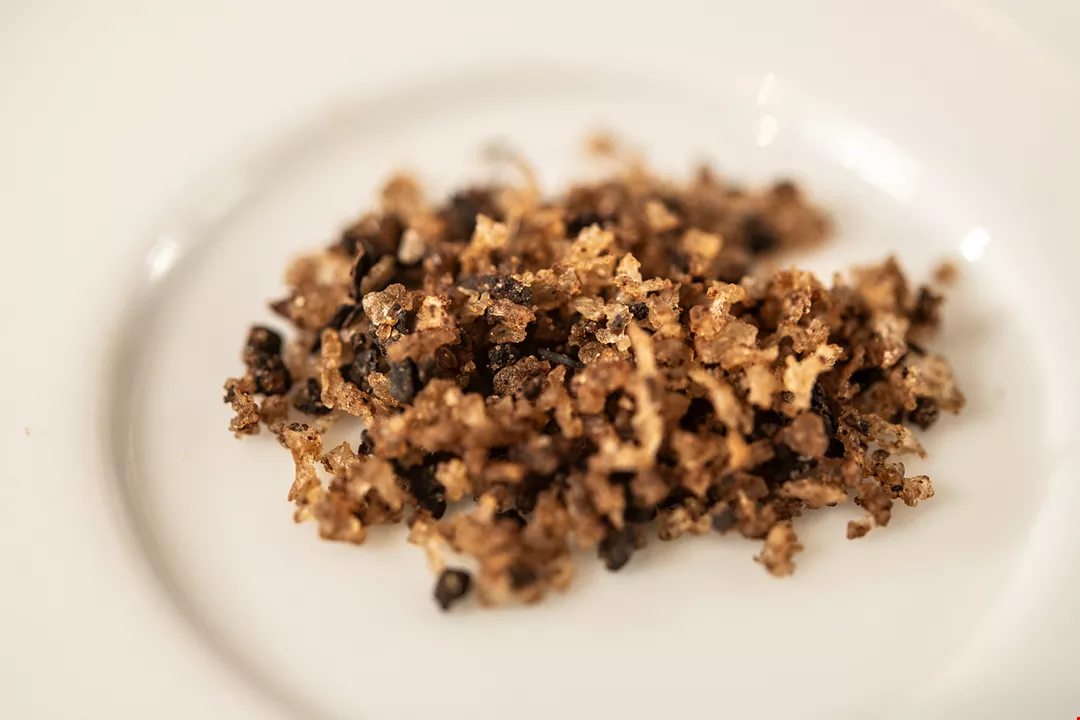 Perhaps the most outstanding item on Regent Taipei’s salt bar is the fleur de sel contributed by Wan Feng Soy Sauce in Douliu, Yunlin County. This comes from salt-rich black bean soy sauce vats, produced through a process of repeated evaporation and recrystallization. Having absorbed the aroma of soy sauce over a long period of time, the salt carries a particularly rich and pungent flavor.