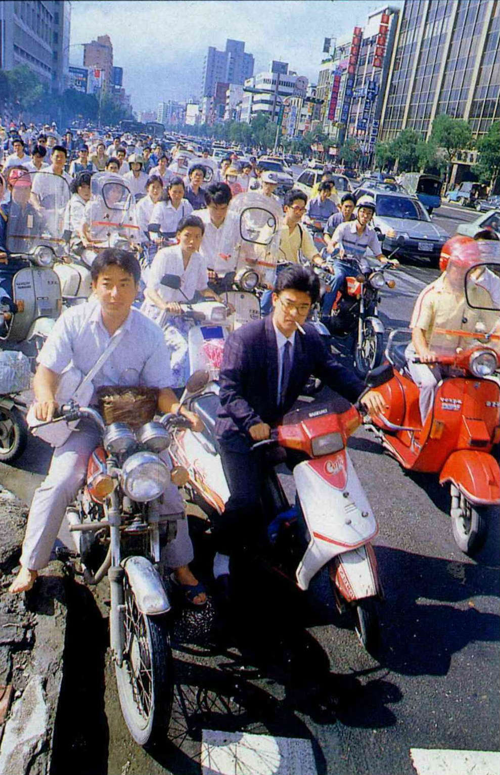 According to the Ministry of Communications, the number of vehicles packing the streets and roads of Taiwan will exceed 10 million by the end of this year, more than three fourths of which are motorcycles and motor scooters. Not counting the nondriving population under eighteen, that means nearly one motorcycle or scooter for every two people on the island. Although Taiwan may not have the largest number of motorcycles in the world, its per capita ratio is unmatched by any other country.