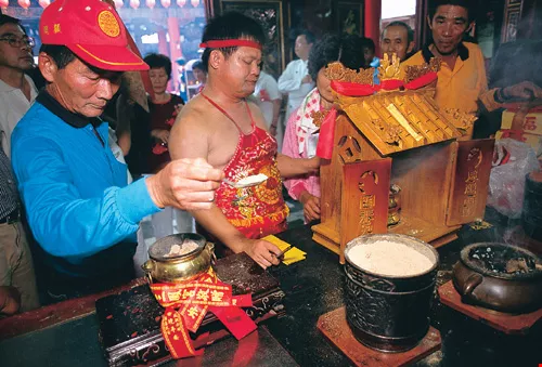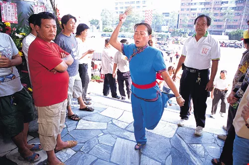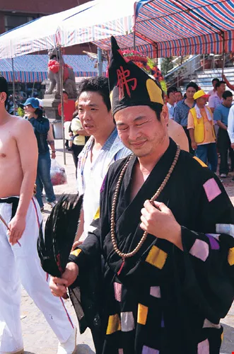 Piercing the cheeks with a long needle, walking blindfolded, holding burning incense in the mouth, or transforming into drunken Jigong, the birthday of the Third Prince Nezha every year brings spirit-mediums from temples all over to come to offer their prayers and display their spiritual prowess. It is truly an eventful gathering of spirit-mediums.