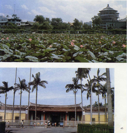 The Botanical Garden is a secluded and quiet spot in the middle of the hustle and bustle of Taipei. Students go there regularly for art lessons and adults for a stroll or some other form of exercise in the fresh air. Established in 1894, the garden is one of the oldest public facilities in Taipei. Today, the garden, occupying an area of some eight hectares and run by the Forestry Research Institute of the Taiwan Provincial Government, contains more than 1,400 species of trees, palms and shrubs belonging to the tropical, sub-tropical and temperate zones. The institute has eight departments engaged in research on plant classification and ecology; economic value of plants and breeding techniques; plant marketing; flood prevention; timber processing and plywood manufacturing; chemical make-up of plants and their economic value; paper manufacturing skills; and promotion of planting. The institute exchanges seeds with other countries, or with tourists visiting Taiwan, but does not engage in sales. Visitors to the garden can find greenhouses full of tropical plants and flowers, while in summer months, the beautiful red lotuses are in bloom.