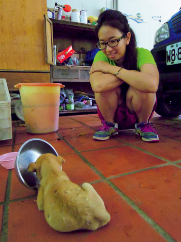 5:00 PM:Feed the former stray dog the guesthouse has taken in.