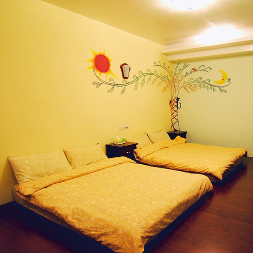 The rooms at Hualien’s Shin-Liu Farm boast the artwork of one of their former working holidayers.