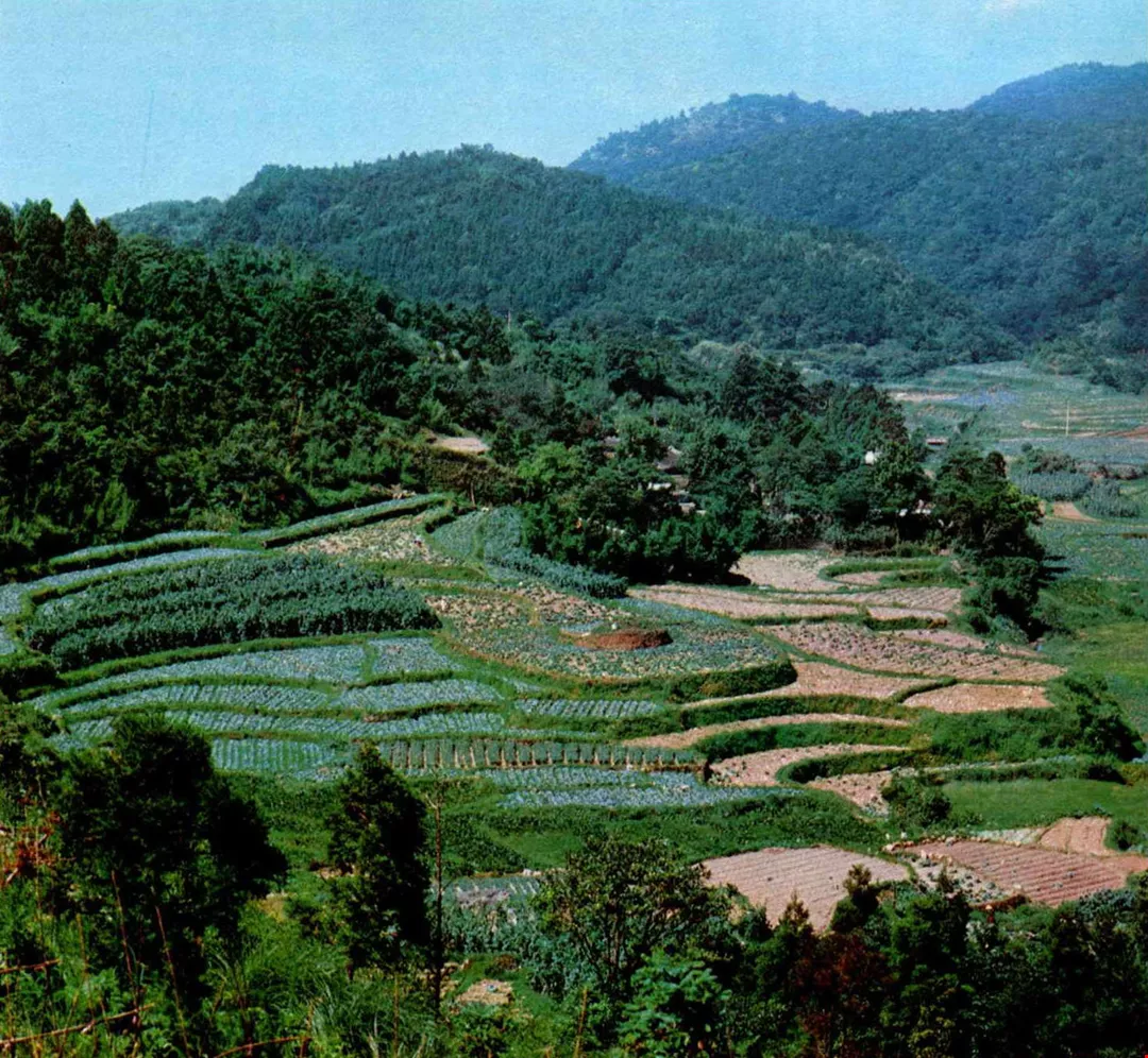 The green expanse of vegetables (far left), and above, the terraced vegetable gardens around Chutzuhu (Bamboo Lake) in Yangmingshan help to improve the area's scenic beauty.