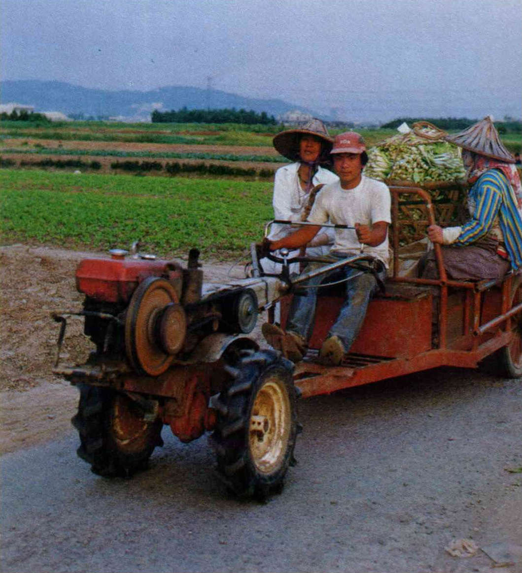 The Taipei City Government provides a subsidy for the farmers' associations in the two areas to buy heavy tractors and other equipment. Each family also has a small sized tractor-truck known locally as an "iron ox." These versatile machines serve either as tractors to plow the fields, or as trucks to transport seedlings, fertilizers and harvested vegetables.