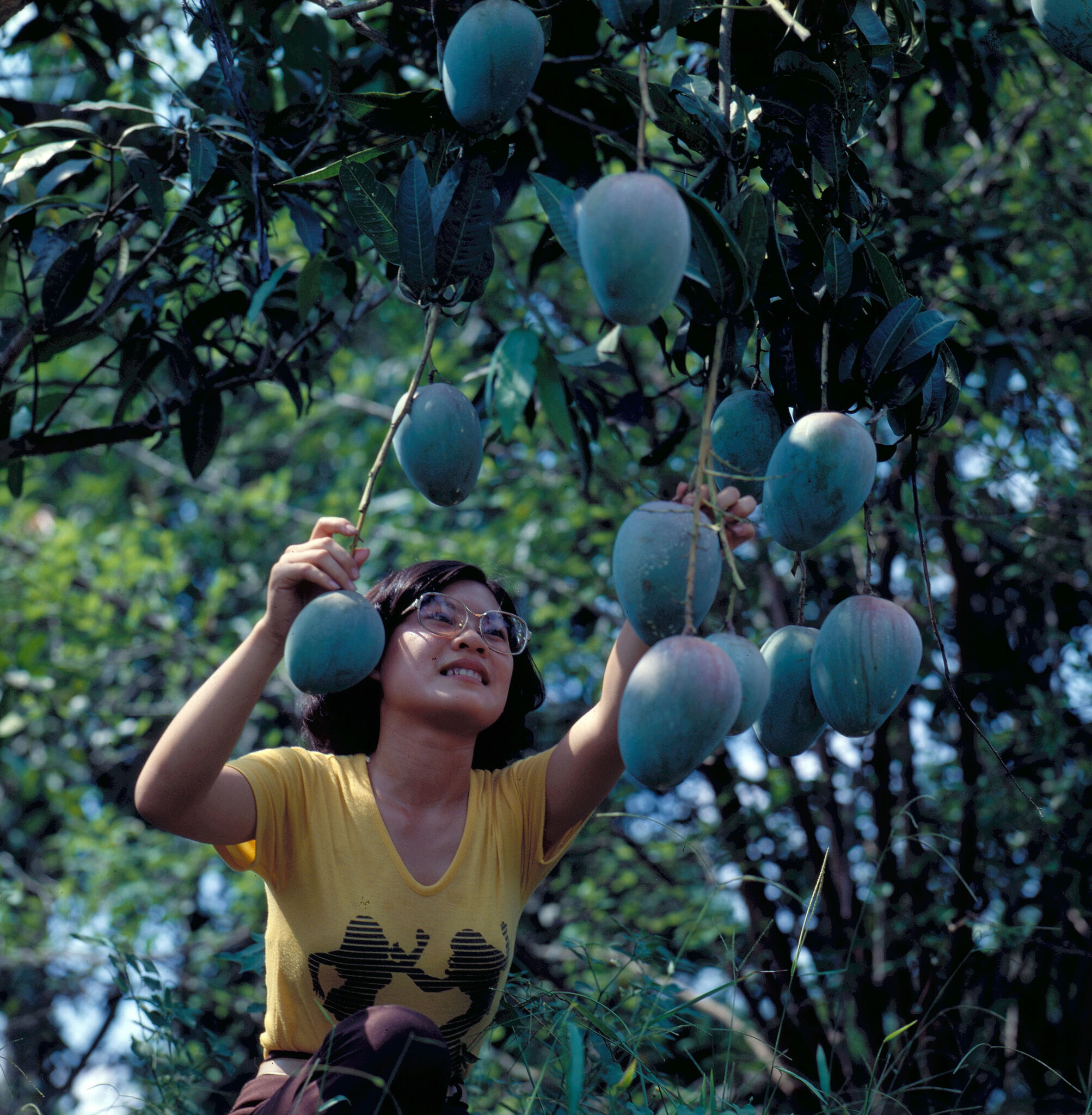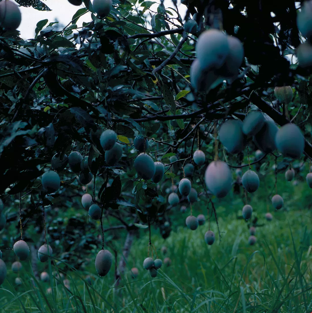 The trees of the U.S. strain of mango are low and their fruit is easily collected.