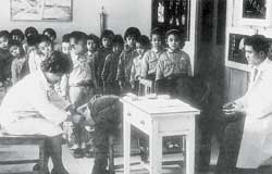In the early years, many children suffered from the disease of internal parasites. Medical personnel regularly visited primary schools to conduct anal exams, collect stool samples and administer medicine-with excellent results. (photo courtesy of DOH)