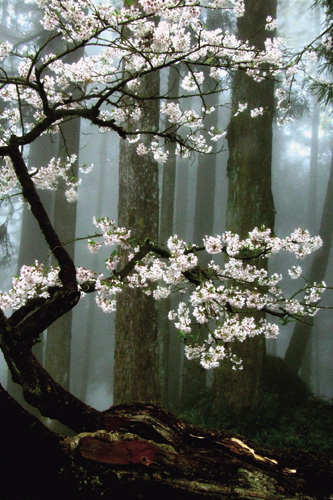 Unlike the native cherry trees with their red, drooping flowers, the Japanese Yoshino cherry boasts snow-white, erect blossoms, whose petals fall to the ground like snow come wind and rain, symbolically coinciding with the poignant, sacred "Yamato spirit" of the Japanese soldiers as they sacrificed themselves on the battlefield for their country. But after they were transplanted here, their blossoms became less impressive with each passing year because they weren't acclimatized for the region. Indeed, the local cherry trees, which had been removed from the area, came back with a vengeance, blooming like wildfire. "These are the real cherry blossoms of Alishan," says Chen.