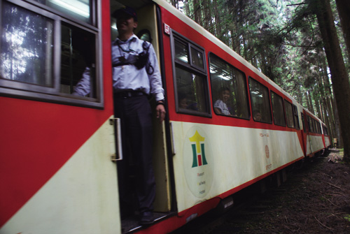 Time slips by, a hundred years passing with the sound of the steam whistle. The little train, at one time carrying loads of thousand-year-old cypress timber down from Alishan, now brings groups of tourists from all corners of the world uphill. Like an old champion, though out of breath, it remains faithful to its duty. Alishan may no longer rely on the train for transport, but amid Alishan's luxuriant green woodlands, the train's classic red form is something that cannot be missed.