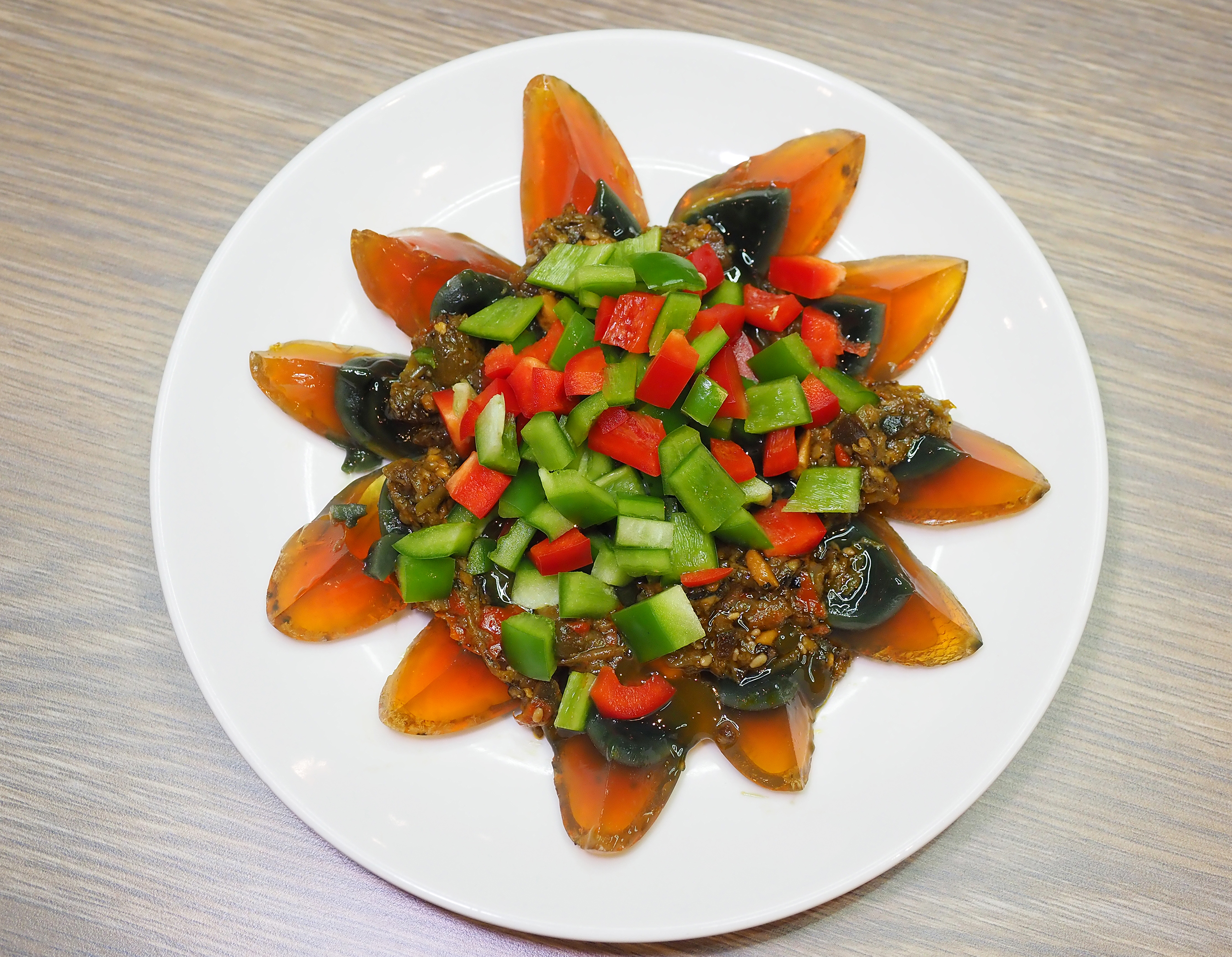 In days gone by, cold century eggs were often served at streetside banquets and wedding feasts.