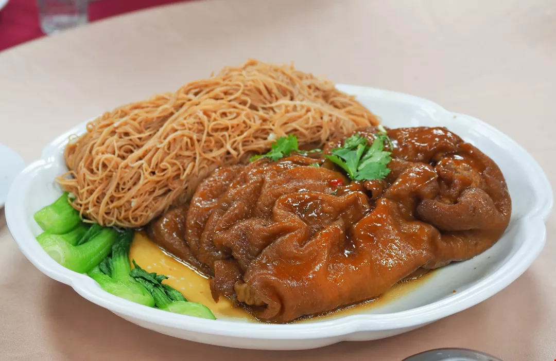 “The way and the context in which a Taiwanese pān-toh banquet is orchestrated vary according to each occasion,” Tseng Pin-tsang says. Thus, he tells us, banquets that celebrate old age or the birthdays of deities usually begin with pork knuckle rice vermicelli, which symbolizes longevity.