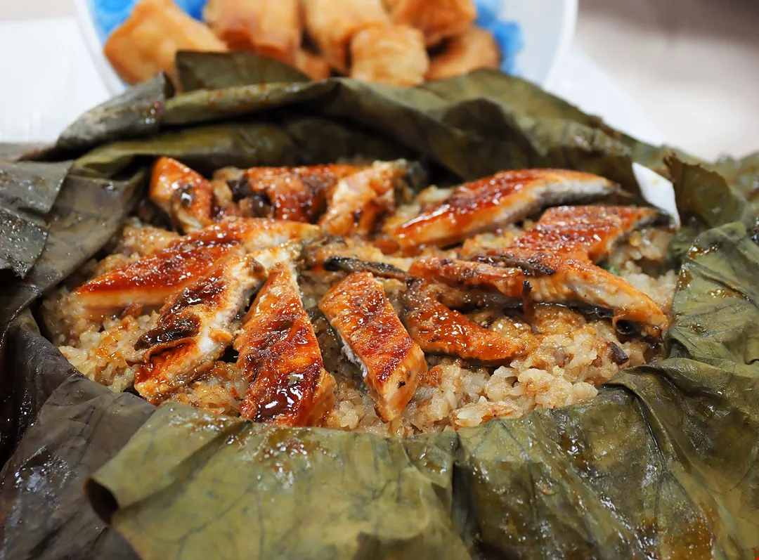 Pān-toh dishes: eel on sticky rice, stewed Silkie chicken, braised pork.