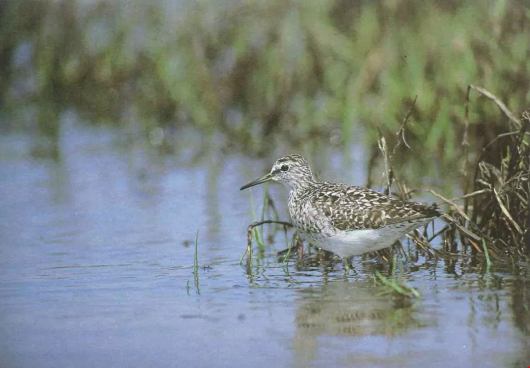 Photos show a wood sandpiper (above left), a Stegmann's Mongolian plover (below left), and a Geoffroy's sand plover (right). They all visit Taiwan regularly in the spring and fall. (photo by Ch'en Yung-fu)