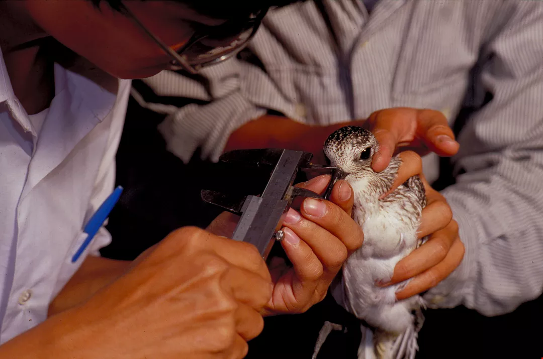 Ornithologists of an earlier day used to attach a wire thread to the bird's leg to trace its migration patterns. But because the birds would often peck it off, they later changed to silver bands. After constant improvements, what is used today is a rustproof band made of incoloy. At the same time, besides banding a bird, they also record various measurements and observations about it to make the work even more meaningful and scientific.
