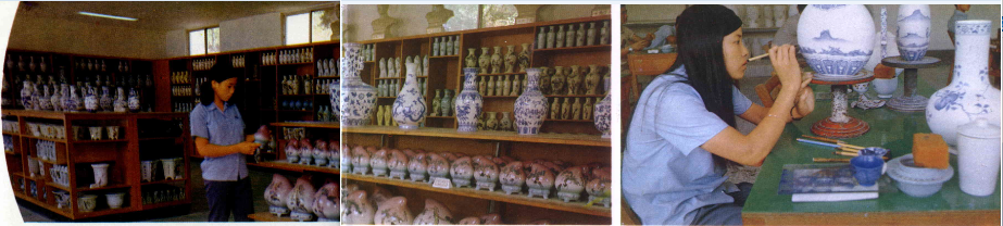 Kinmen pottery includes artistic products, modern articles and kaoliang wine bottles, hand-painted by local artisans
