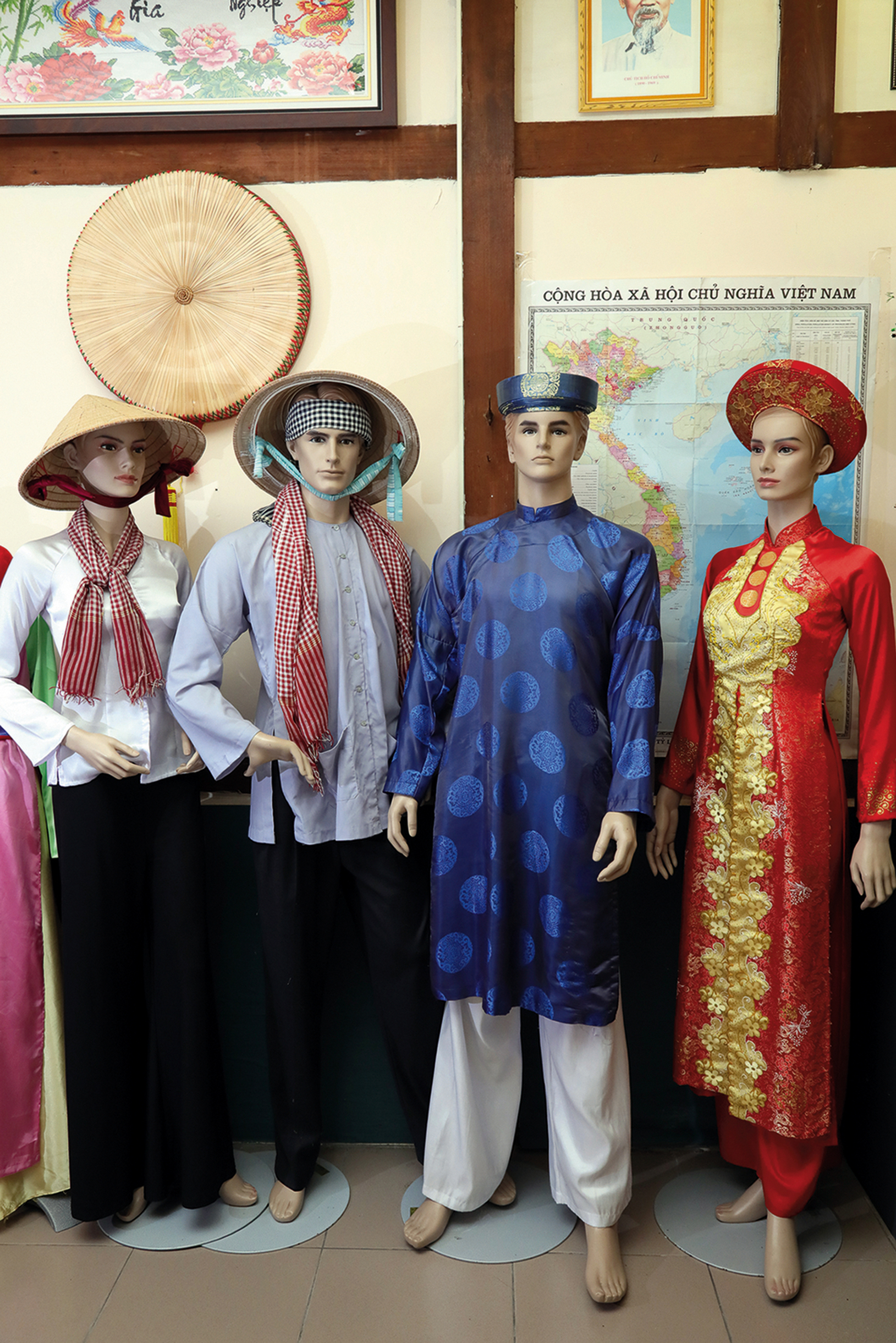 A display of traditional Vietnamese clothing. The costumes also can be rented out.
