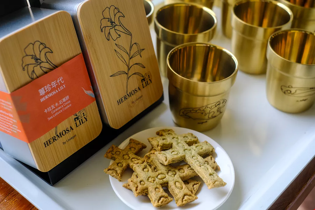 Our very last stop on Heping Island is Love Pin, a café on the third floor of the visitor center at Heping Island Geopark. Here we cast our minds back over scenes from Hermosa while savoring foods prepared with local algae such as sea grapes (Caulerpa lentillifera), and flying-fish roe, along with cross-shaped biscuits that emit the soft fragrance of dried seaweed, being made with locally harvested sea lettuce.