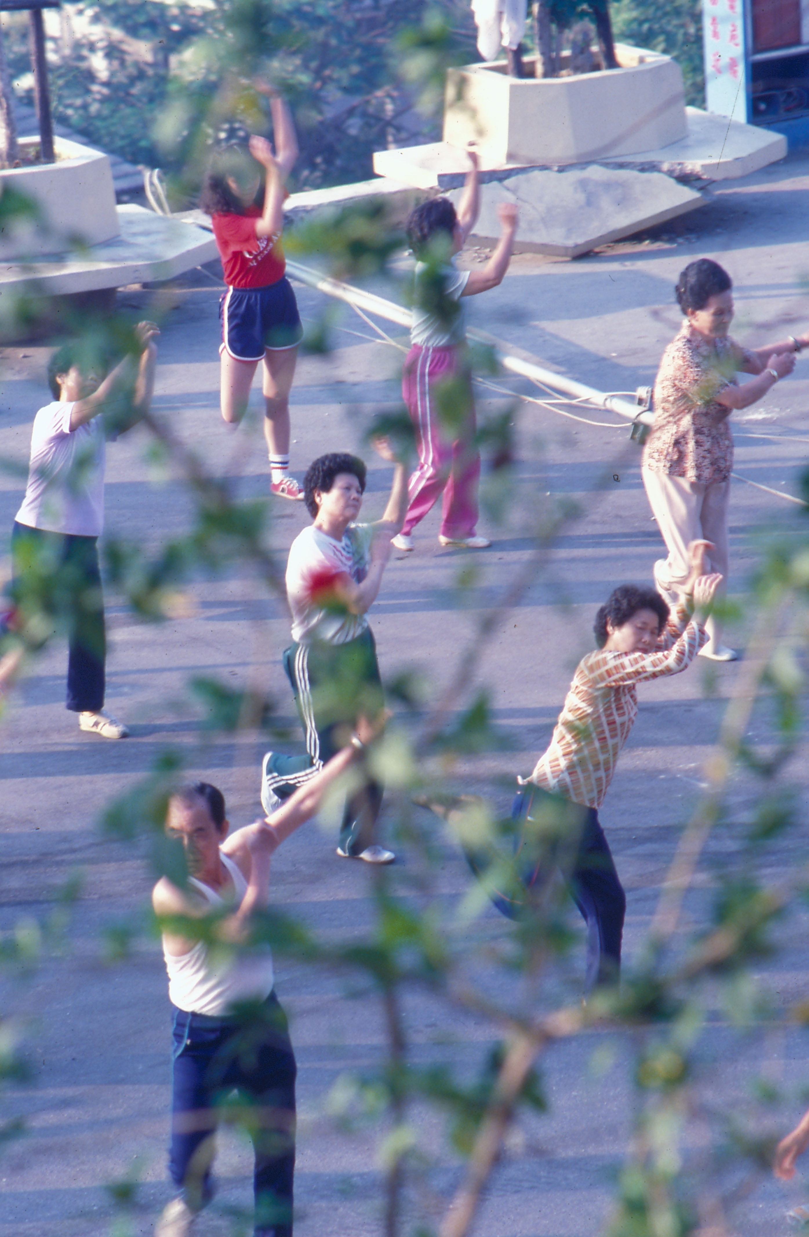 2. In the early morning, Shoushan Park is filled with people exercising.