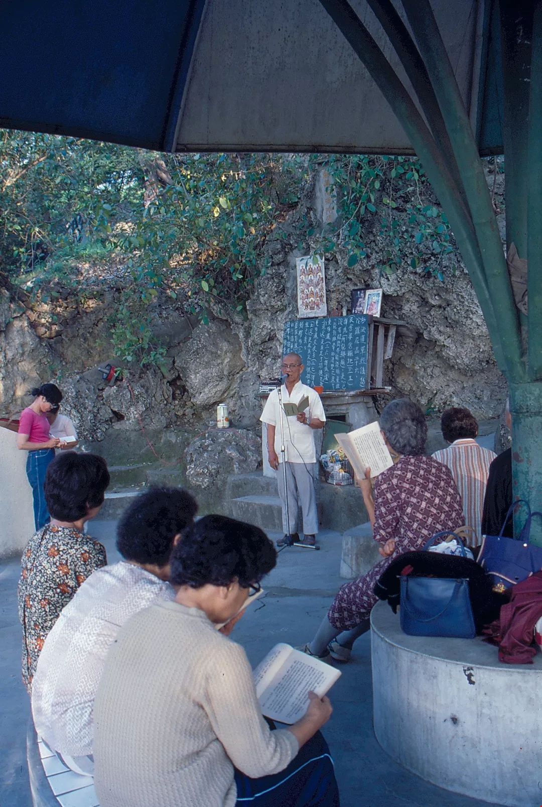 6. In the afternoon Kaohsiung's senior citizens gather in together a pavilion to read stories.