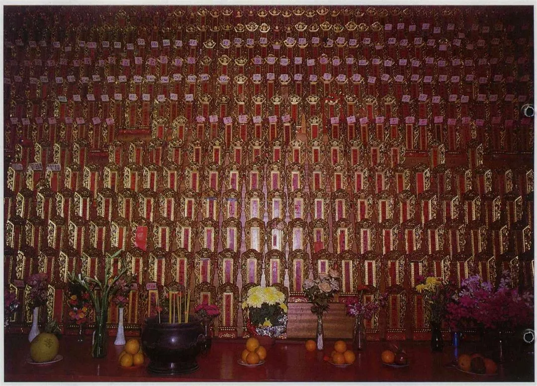 When descendants emigrate, the ancestral tablets accompany them overseas. These overseas Chinese in Hawaii have entrusted their spirit tablets to a local temple. (photo by Arthur Cheng)