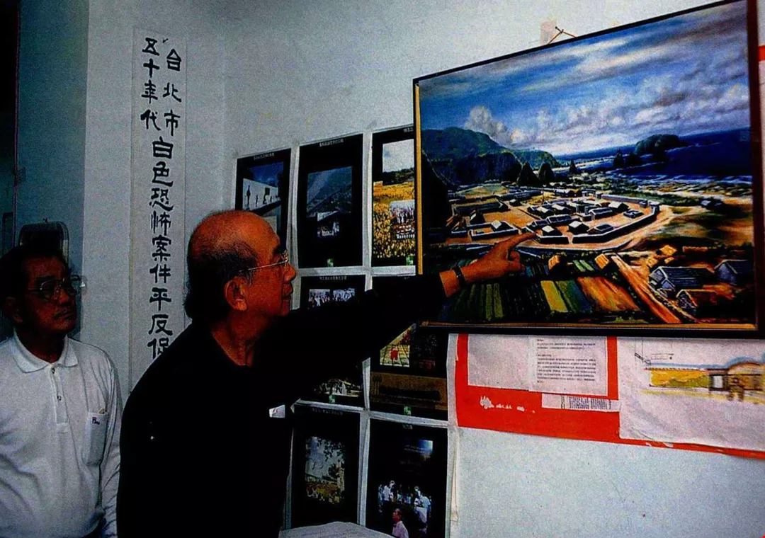 Shih Hsien-hua, a native Taiwanese, was learning Mandarin at a supplementary school in 1949 when he was implicated in an espionage case involving his teacher. He was imprisoned on Green Island for 13 years. The year before last, when he and fellow victims formed the White Terror Resistance Association, the first thing they did was to return to Green Island to reflect upon the suffering they went through there. About 90 former prisoners returned together only to find that the prison administration had torn down a portion of the wall. They were all deeply saddened by this destruction, and one former inmate drew a sketch of the old prison from memory. On the day of the ground-breaking ceremony for the Human Rights Monument, Shih brought a poster that he had made based on that drawing, and unrolled it for everyone to see. "Although these memories are painful, we don't want to forget them, because we don't want our experiences there be buried and obscured."