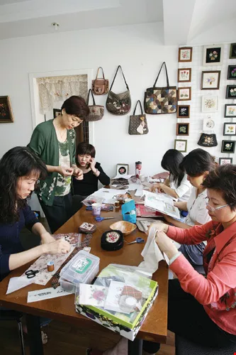 With an ayi doing the housework, Taiwan mothers go out and learn new skills. In the quilting classroom Taiwan mothers take needle and thread to do their close stitching and go right on chatting about their domestic affairs without let-up.