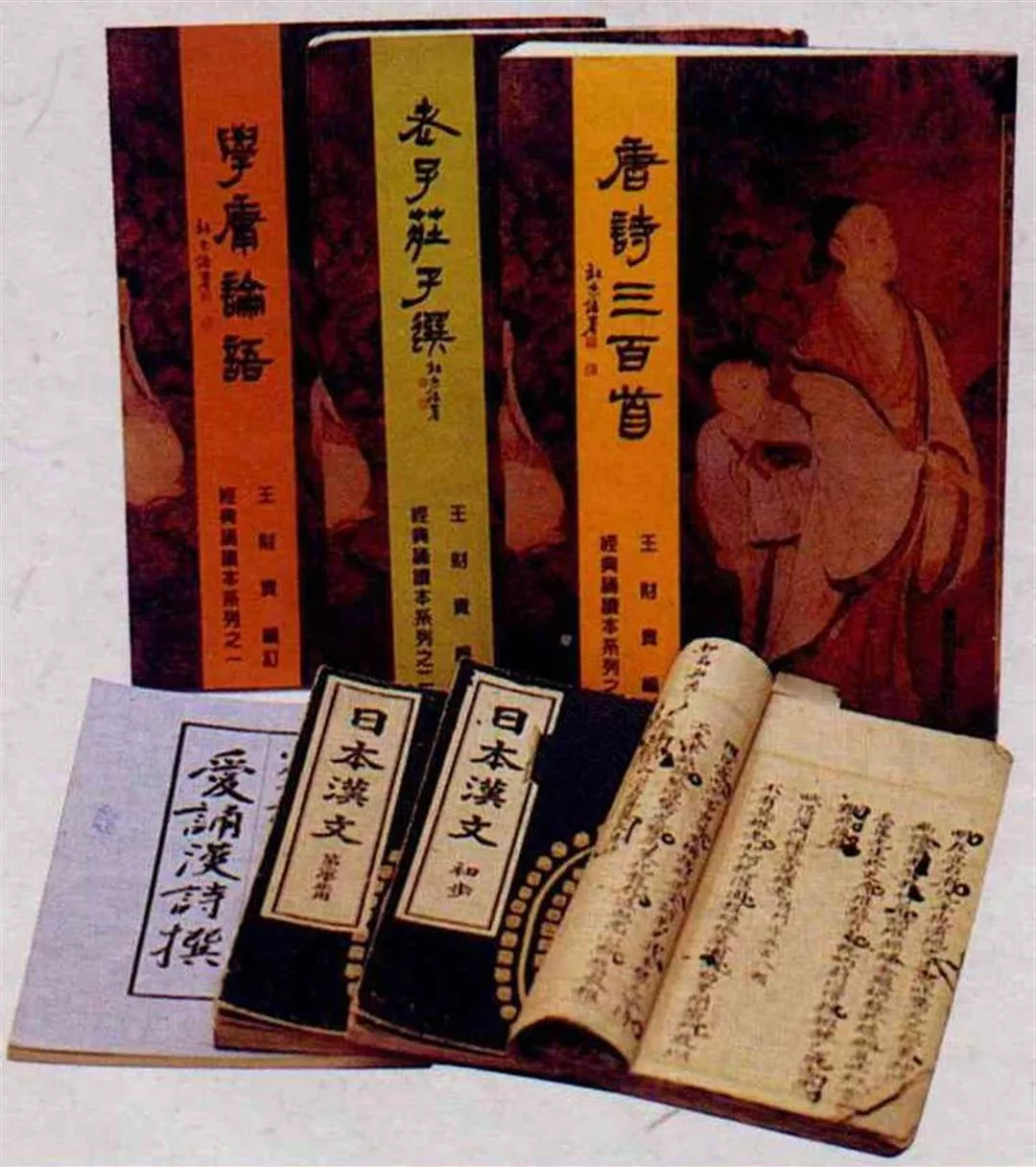 Today and yesterday juxtaposed: Texts used by children to recite the classics, next to Chinese textbooks from the Japanese era.