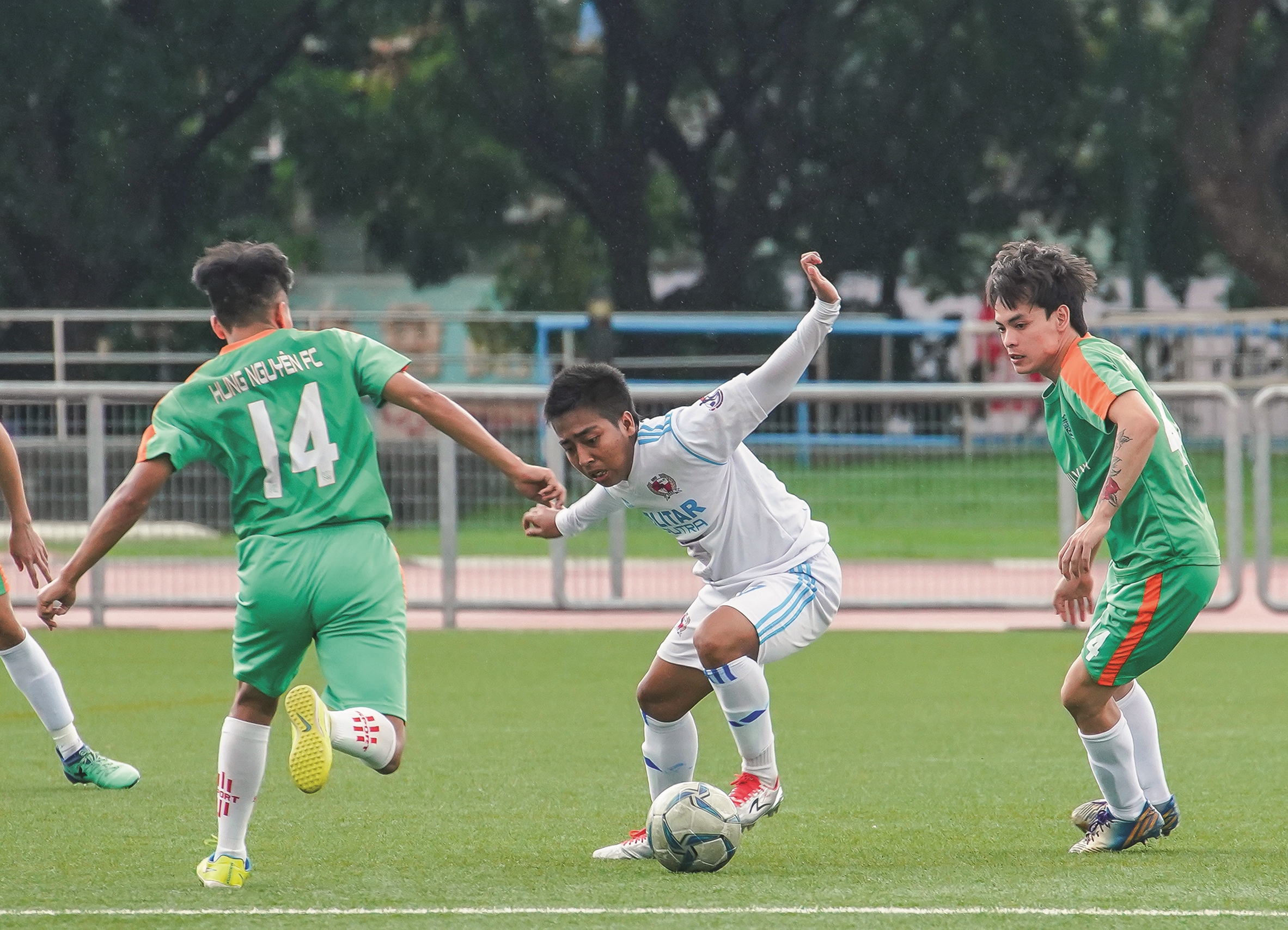 The athletes, a mix of foreign laborers and professionals, pound up and down the length of the soccer pitch’s international-grade artificial turf in their brightly colored uniforms, the sweat pouring off of them. A row of red frame tents lined up outside the bounds of the pitch brims with joy and energy, as the scents of Indonesian, Vietnamese and Thai snacks waft through the air, stirring appetites.