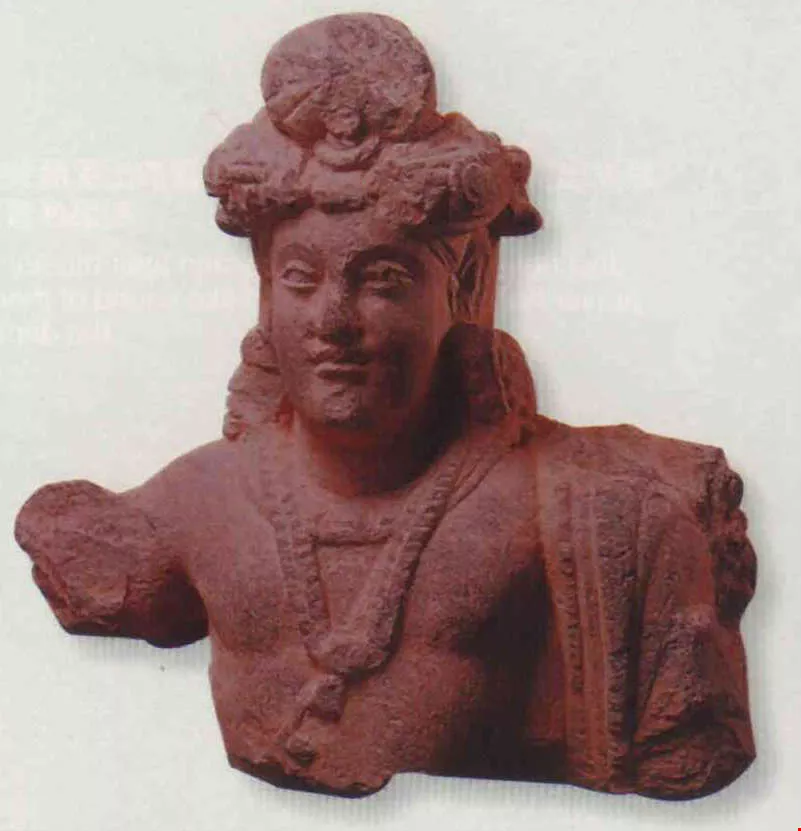 With its aquiline nose, curly hair, and muscular physique, this boddhisatva from Gandhara speaks volumes about the influence of Hellenic culture in northern India, which had once been part of the Greek empire.