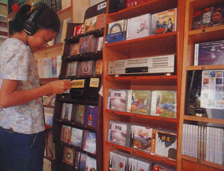 Buddhist chanting, set to traditional Chinese music, plays in the background at a vegetarian restaurant, ensuring that diners are nourished spiritually as well as physically. The boppy beat of the "Caishen (God of Wealth) Mantra" accompanies a taxi driver on his rounds of the city, praying for profitable business. At a stall in the night market selling Buddha beads, customers are drawn by the "Dabei (Great Mercy) Mantra" from a smash-hit album that has sold several hundred thousand copies in the last two years. And early in the morning, the sound of Buddhist chanting to the well-known tune "Suwu Muyang" can be heard blasting from a neighbor's hi-fi.