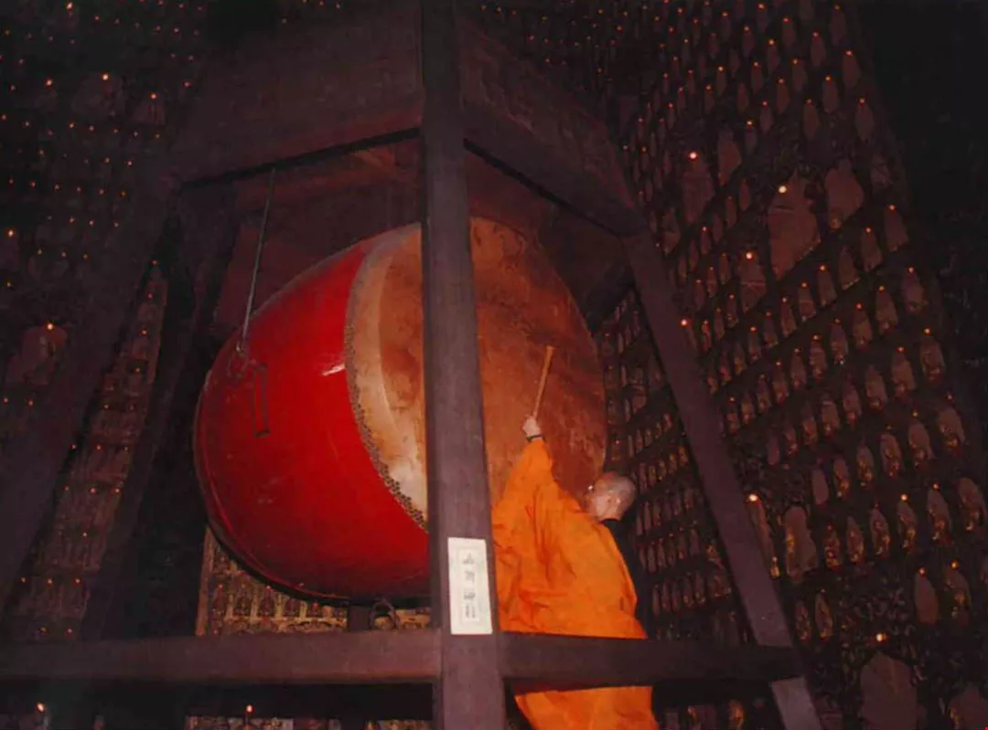 In the still of the night, the beating of a drum marks the end of another day at the temple. It also tells of the impermanence of everything and the speed at which time passes-a reminder to the monks that they should cherish every moment and be devoted to their Buddhist studies. The drum stops and a bell takes over. The inhabitants of the temple are thinking with compassion of the people of the world, hoping that the sound of the bell will help ease their sufferings and bring them joy. As the bell rings out through the night, it reaches the ears of everyone around, young and old, before passing on out into the void.