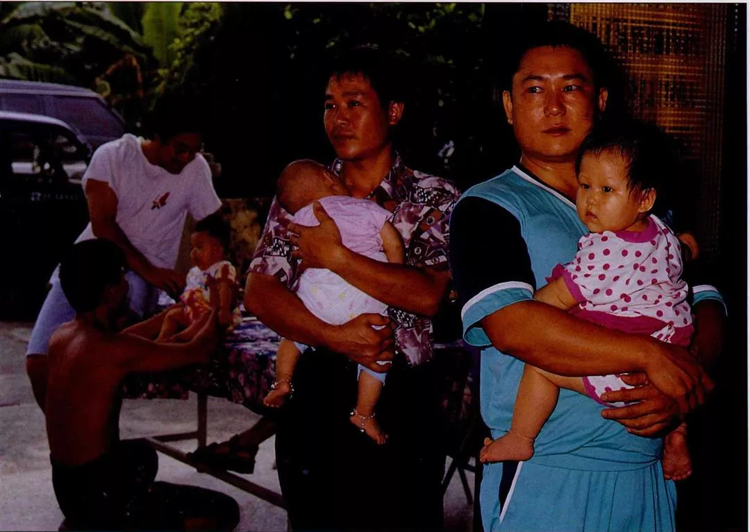 Chan Sen-lin's experience is typical of those in international marriages. He and ten other single men from Hualien, Su'ao, Ilan, and Kaohsiung, formed a "wife-finding mission," comprising laborers, fishermen, farmers. and one divorcee who ran his own factory. Every member of the group paid NT$350,000 to the marriage broker, covering everything from travel costs to the dowry for the wife's family, and before departure each man also bought a pair of gold engagement rings. Led by the broker, they set out together in a conquering mood. Once in Jakarta the matchmaking began in earnest, with local marriage brokers bringing the girls to the men's hotel. "They brought twenty or thirty seamstresses," recalls Chan, "and I looked them over one by one. I found my wife after viewing ten other women first." Chi-mei, who is taller than her husband by half a head, was 34 years old, and came from a family of eight brothers and sisters. With her father already in his eighties, the family relied on her older brother, a fisherman, to make ends meet. They lived in a wooden hut rented from Indonesians. Her work as a seamstress brought in an average of NT$3000 a month. Chan Sen-lin seemed sincere and kind-hearted to her, and ten days after meeting they were married. The matchmaker paid her family NT$30,000 in dowry, and she set out to begin a new life in Taiwan with her husband.