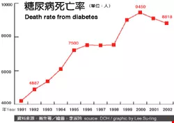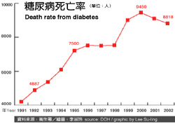 Death rate from diabetes source: DOH / graphic by Lee Su-ling