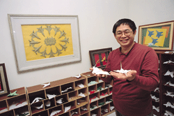 When 16 years ago a neighbor's child asked Chuo to make a paper airplane, his dream of flight was called up from deep within, and from that moment on he was suddenly immersed in the world of the paper airplane. Although he majored in Chinese at the university level and had no courses at all dealing with aerospace or mechanics, when it came to aerodynamics he was on a par with any physics teacher.