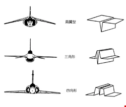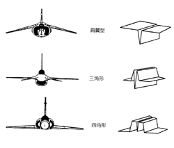 Chuo's three original shapes: the underslung fuselage, inspired by the Harrier jump-jet; the triangular fuselage, developed from the F-16 fighter; and the square fuselage patterned after the F-4 and the MiG-21. (courtesy of Chuo Chih-hsien)