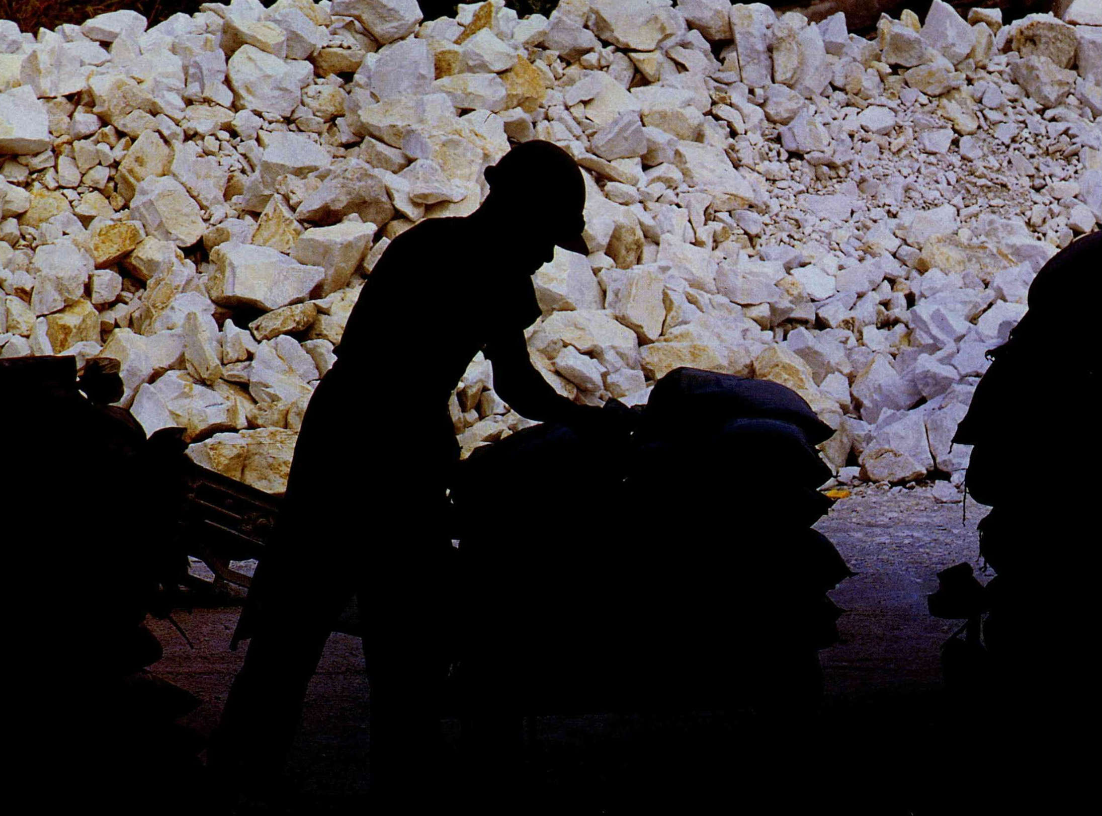 Machines roar and rumble as the bright white stones are ready to be moved. Suao is Taiwan's major supplier of gravel for construction.