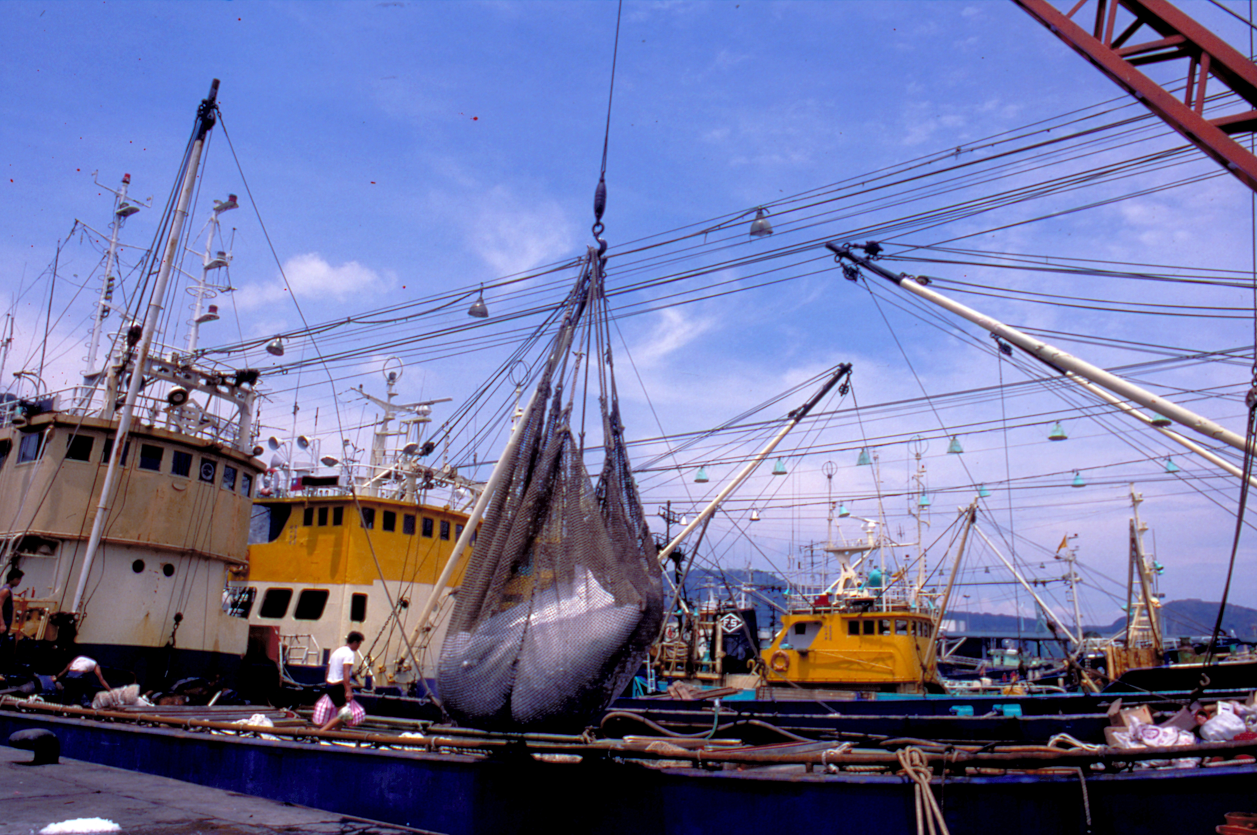 With the passing of Ghost Month, boats quickly fill up with ice in order to prepare to go out and make a living.