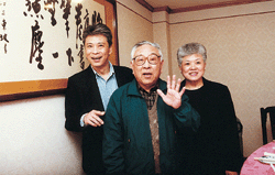 Will the real "Wang Tse" please stand up? Alphonso Wong (center) has always used the pen name Wang Tse (Mandarin pronunciation), which is also the name of his eldest son, to sign his Master Q comic strips. At left is the genuine Wang Tse, known in English as Joseph Wong. At right is Alphonso's wife Chen Ling-ling, who served as the inspiration for Miss Chen is the comic strip. (courtesy of Martin Chang)