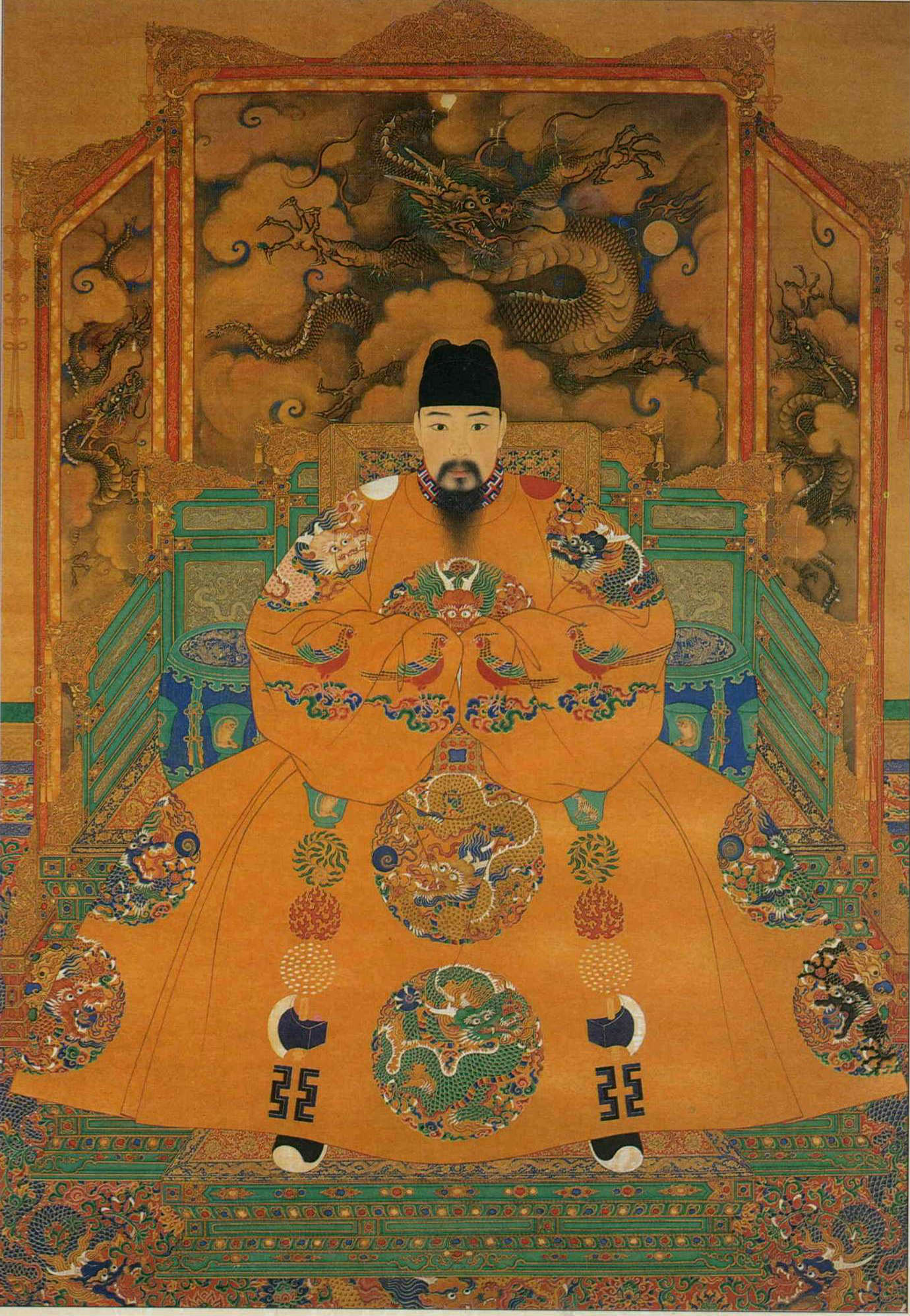 During the Ming and Ching dynasties, uses of the dragon totem were strictly regulated, with separate sets of rules for emperor, noblemen and commonfolk. A five-clawed dragon, as in this painting of the Ming Emperor Hsiao Tsung, could only be used by the emperor.(photo courtesy of the National Palace Museum)