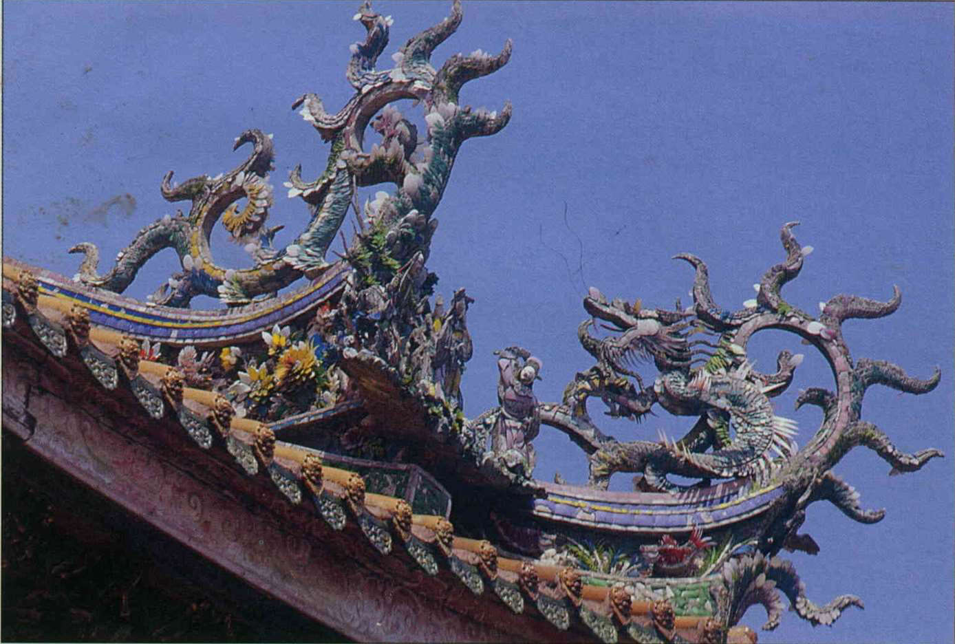 The Chinese totem of the dragon has left a deep imprint on its people, and is found everywhere there are Chinese. You can often see dragons craning their necks skyward at the end of a temple's peaked roof.