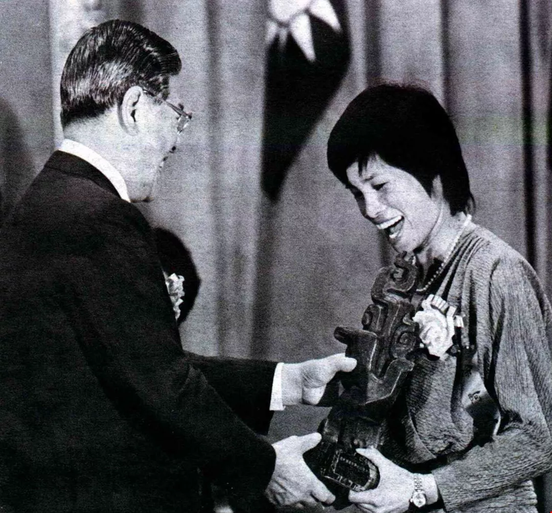 1. Professional golfer T'u Ah-yu ecstatically receives her award. 2. Teresa Teng, awarded for her excellence in the field of entertainment, is as lovely as her music.