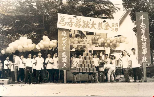 Kuala Lumpur's Chong Hwa Independent High School was one of the schools then operating both as a government middle school and as an independent school. Its principal, Tan Soon-hock, recalls the hardships of operating at the time, of feeling like a gang of beggars-having to run around not only to rustle up money, but also to find students. By 1972 the student body of the independent part of the school had dropped from more than 1000 to less than 200. They felt that to revive the school's fortunes they needed to break away from holding their classes in the afternoons, find a new location and undergo a major overhaul. "The 30 directors, the teachers and the students were all of one mind," says Tan. To raise funds for a new school, every year during the festival of the Nine Kings, for seven days straight the teachers and students would go to the temple to sell flowers and raise money.