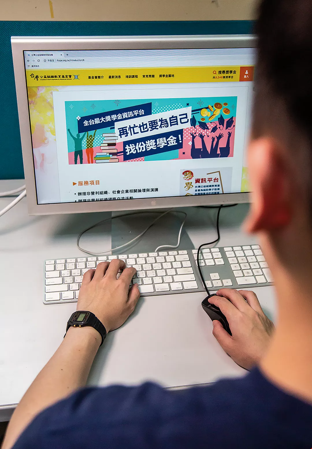 Although scholarship money isn’t much, ranging from thousands to tens of thousands of NT dollars, it can be a lifesaver in time of need. But many of the teachers say that although there are abundant scholarship resources available from nongovernmental sources, for the most part they have depended on each private source notifying the school before the scholarships could be announced on the school website. Because the sources are many and sundry, if one didn’t pay careful attention, it was easy to miss them. Even if prospective applicants found the information, they had to comb through the offers one by one to see which ones were applicable to them, a time-consuming and tiring process.