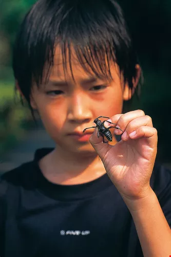 At Shangrila, where the source of income is tourism, the fruit trees Chang Ching-lai has planted all bear large quantities of fruit and are highly resistant to disease. This makes the use of pesticides unnecessary and creates a healthy environment where children and insects can naturally intermingle.