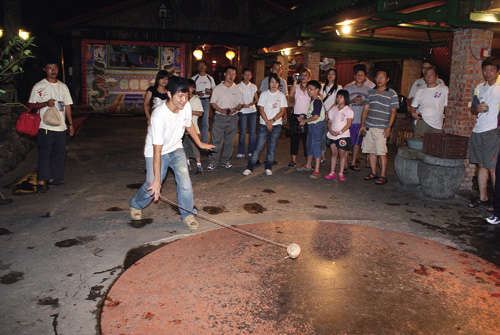 Coming from Hong Kong, Huang Jianzhong and his family have been to Taiwan twice, and just as Chang Ching-lai says, traveling around Asia is nothing unusual to them. Huang, who rents a small piece of farmland in Hong Kong, has been longing to live the life of a farmer where he can sink his feet in the mud and pick fresh fruit. After finding the scenery of Shangrila Leisure Farm on the web, he and three generations of his family decided to go there for a vacation. When along the way 70-year-old Grandma Huang saw waves of rice fields she was ecstatic. In stark contrast to the skyscrapers of Hong Kong, Huang Jianzhong's wife quietly enjoyed the tranquil, fresh air of the farm. She says the air in the mountain forests really does have the sweet smell of plants and earth. Beside her is a group of visitors from Malaysia sitting around a table making glutinous-rice dumplings, throwing tops, and sending off sky lanterns. The whole group is in a festive mood and the chorus of Chaozhou- and Fuzhou-accented Chinese can be heard rising and falling.