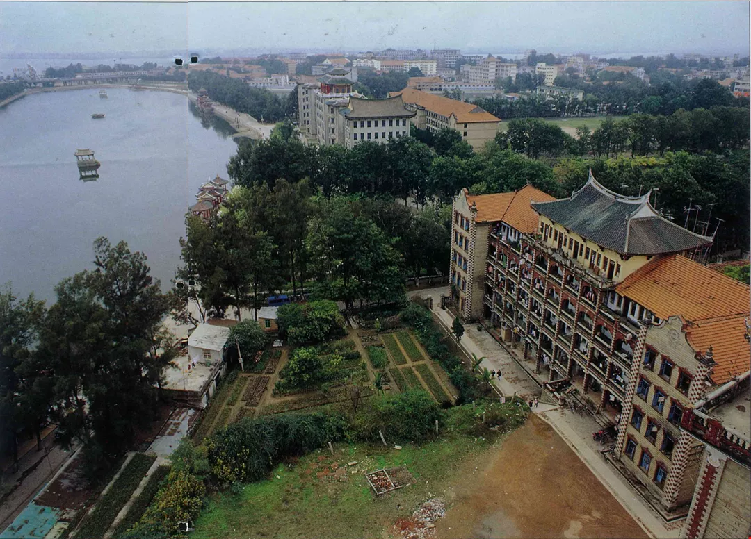 (right) Although having been left unrenovated for years, from a bird's eye view Jimei still appears majestic, its stately and symmetrical design still apparent. Glazed tile roofs and flying eaves were the typical architectural choices of Tan Kah Kee.