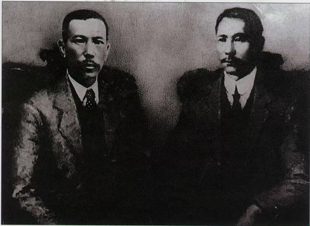 Singapore's Yihohsuen Club, an important meeting point for overseas revolutionaries of Tan's era. Tan Kah Kee, in charge of Yihohsuen, was also a member of the revolutionary society Tung Meng Hui. Shown here is aportrait of Tan Kah Kee and Dr. Sun Yat Sen. (photo courtesy of Committee of Jimei Schools)