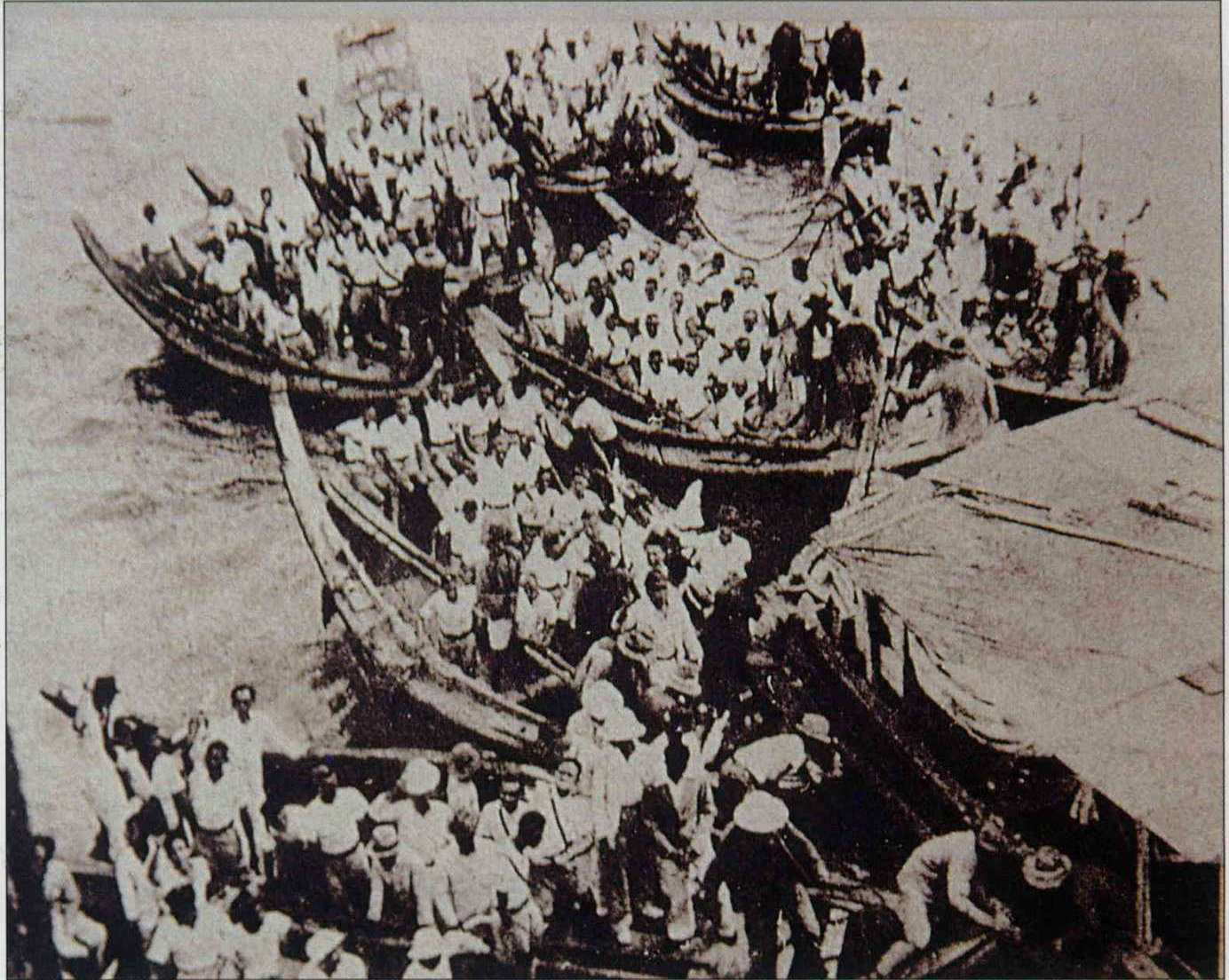 In 1939 Tan Kah Kee was asked by the government to summon up overseas mechanics to return to China and join in the transport ranks along the Burma Road. More than 3000 people signed up from all over Southeast Asia. The photo shows them gathering in Singapore. (photo courtesy of Committee of Jimei Schools)