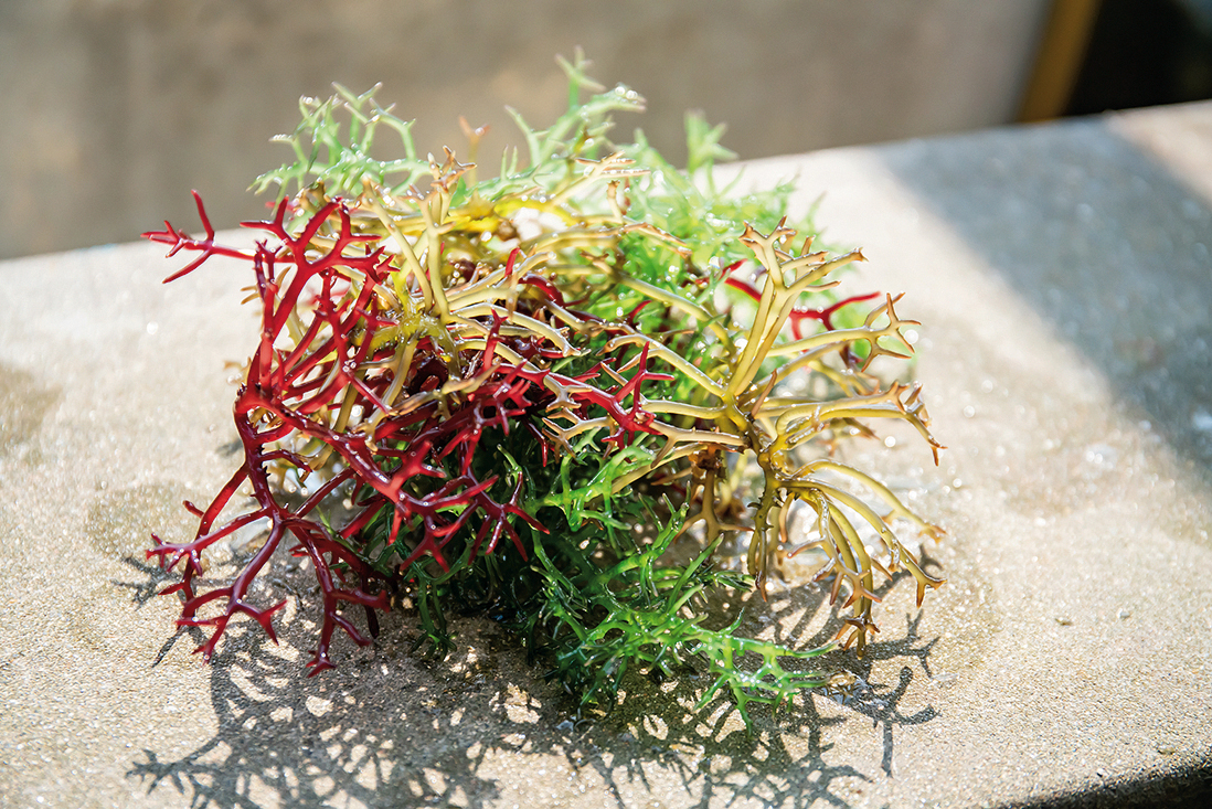 Ke subsequently transferred his technology to cultivators free of charge, enabling them to grow the seaweed year round instead of only in summer. They now produce steady yields of “sea grapes” that they can sell for as much as NT$2500 per kilogram. “You can enjoy them right here on Penghu. No need to go to Okinawa.”
